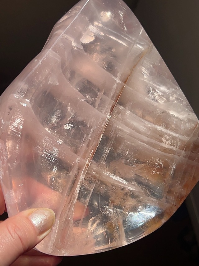 ☆ 美しすぎるスフィアの様なローズクォーツBOWL☆ ローズクォーツとゴールデンヒーラー共生のとても煌めきが美しいギランなBIG BOWLです♡ 少し動かすだけでギランと煌めいてレインボーが美しく❤︎ プルンプルンのローズクォーツBOWLです♡ 一目見て虜になってしまったとても美しいローズクォーツとゴールデンヒーラー共生BOWL❣️ なんてゴージャスで品のある煌めきが美しい子なのでしょう☆ こちらは店主さんがお勧めで出してくれた物です♡ あまりにも美しくて躊躇する事なくお迎えしました❣️ スフィアの様なクオリティの高いギランギランに煌めいて艶々で❤︎ レインボーがいっぱい見れる素敵な甘いピンクBOWLです♡ フォルムのオシャレさも際立ってうっとりなBOWLちゃん❤︎✨ そのまま飾りたいほどですね❣️ ローズクォーツとゴールデンヒーラー共生は大好きで♡ 甘いローズクォーツもピンク色が濃くて本当に可愛すぎます☆ ✨ ローズクォーツゴールデンヒーラーは、無条件の愛・自己愛(ローズクォーツ)と強力なヒーリング・高次元の導き(ゴールデンヒーラー)を併せ持つ稀少石です。 トラウマの癒し、自己肯定感の向上、コミュニケーション能力を高め、愛に満ちた平穏な人間関係を築くサポートをしてくれます。 size 縦17.3㎝ 横14.7㎝ 重さ1071g #ゴールデンヒーラーローズクォーツ共生 #ローズクォーツbowl
