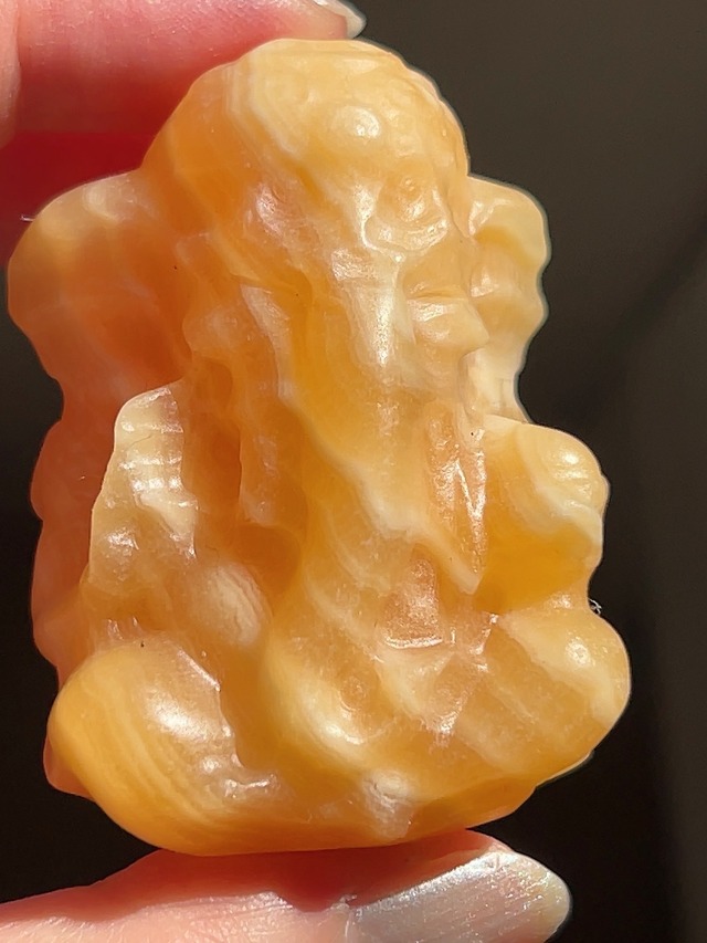 ☆ オシャレな明るいガネーシャちゃん☆ オシャレbandingが素敵なオレンジカルサイトガネーシャちゃん♡✨ bandingが素敵でビタミンカラーのオレンジがとっても可愛いです♡ どこからみてもオシャレさん❣️ ワクワク楽しみ事と福をもたらしてくれるでしょう☆ ガネーシャ(象の頭を持つインドの神)は、あらゆる障害を取り除き、富・福・智慧・成功をもたらす絶大なご利益がある(障害除去、開運、商売繁盛、学問向上)と信じられています。 新しい事業や困難な状況で祈りを捧げると、道が拓けるといわれています。 オレンジカルサイトは、その鮮やかなビタミンカラーの通り、持ち主に明るいエネルギーを与え、心身の活力を高める強力なパワーストーンです。 感情を安定させ、ポジティブな思考や創造性を促し、人間関係を円滑にする効果があるため、新しい環境や自信をなくした際のお守りとして最適です size 縦5.8㎝ 横4.2㎝ 重さ131g #オレンジカルサイト #オレンジカルサイトガネーシャ #ガネーシャ