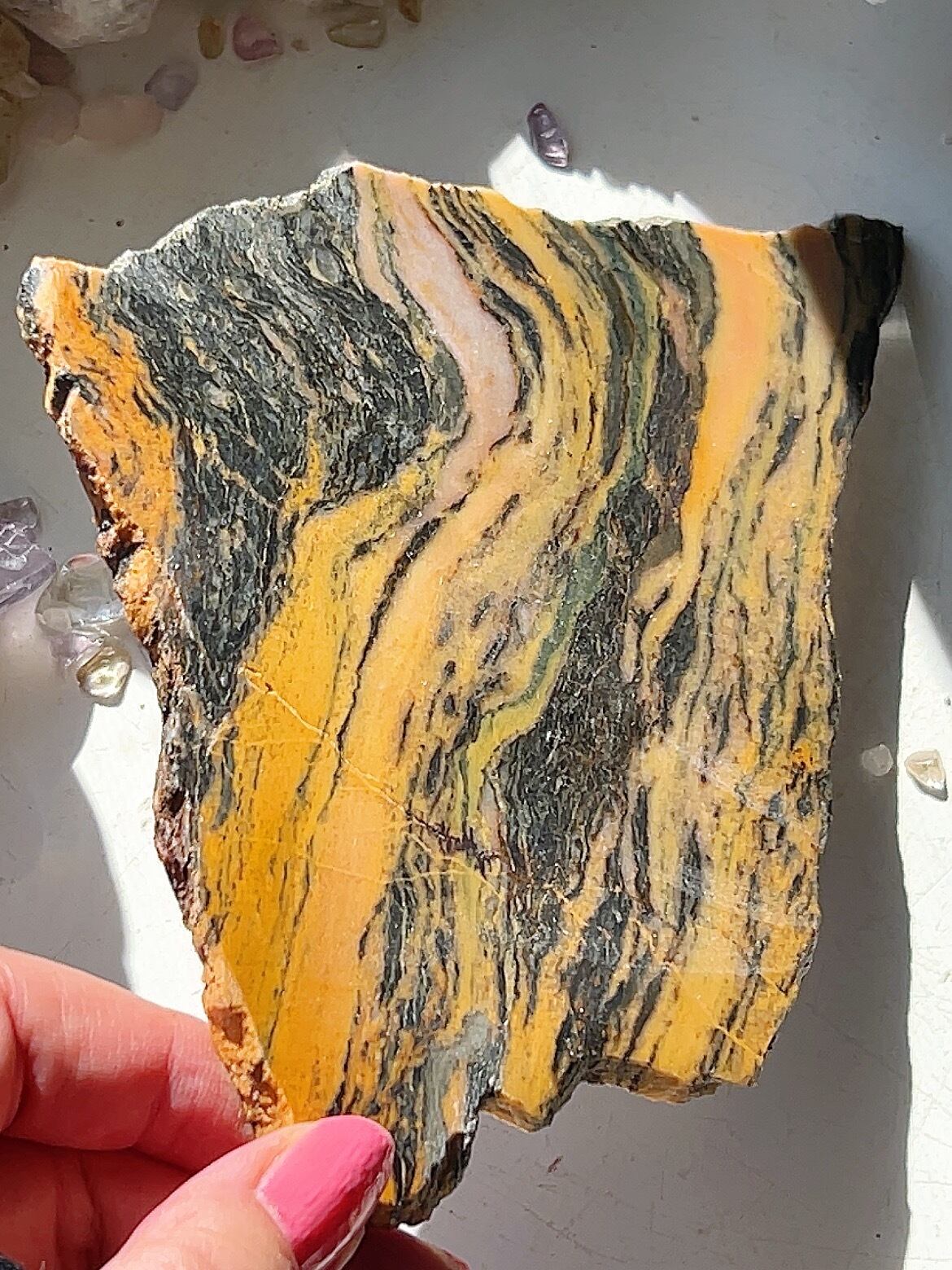 イエローやオレンジブルーグリーンなどのお色がbandingになってるオシャレなスファレライトslabです♡