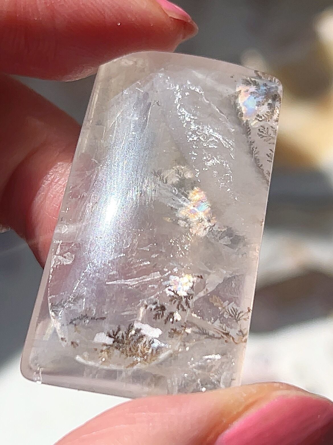 デンドリテイックが絵画の様に美しくレインボーの煌めきが素晴らしいローズクォーツsquareです♡