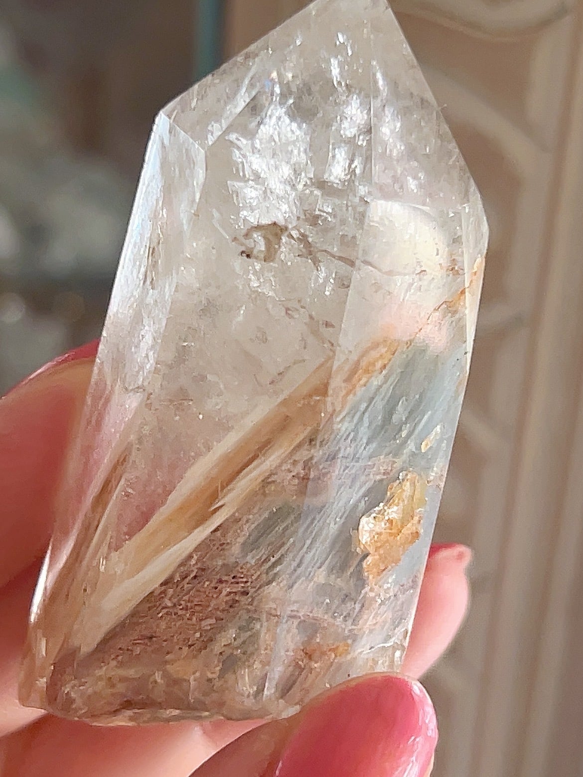 モーブブルーがとても美しくレインボーの煌めきがとっても美しいアンフィボールポイントです♡