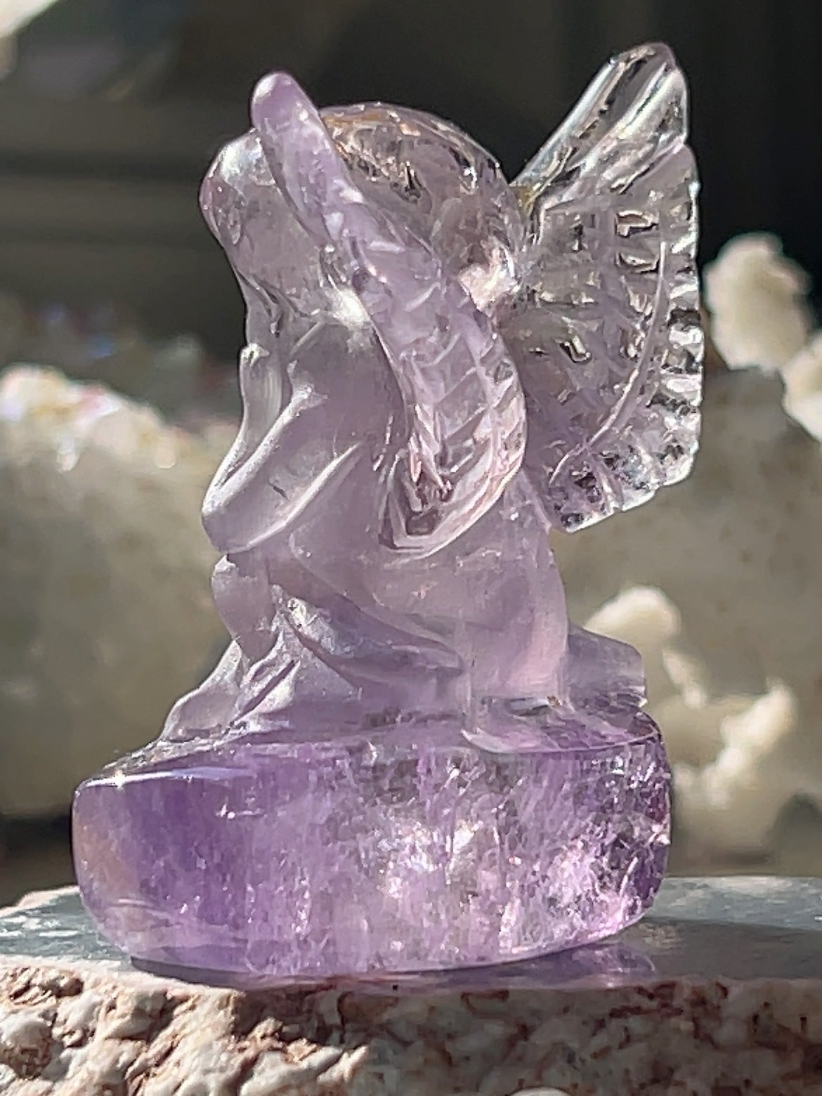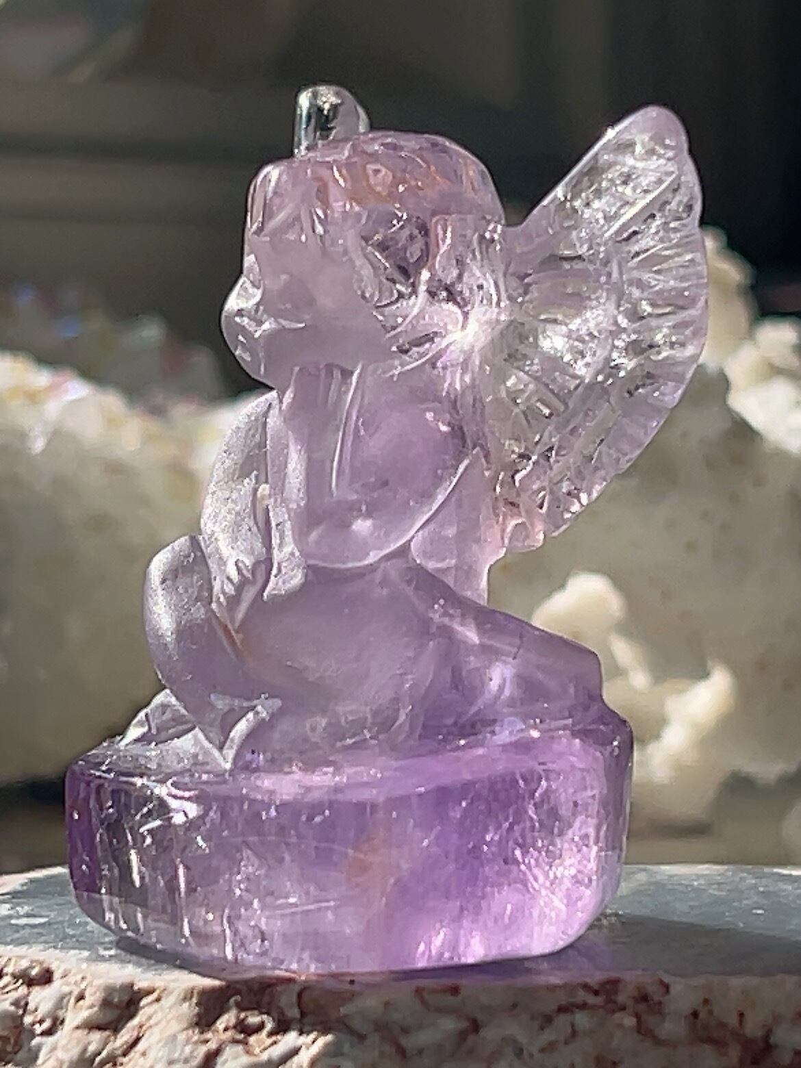 アメジスト(アメシスト)のエンジェル(天使)の置物は、アメジストが持つ高いヒーリング効果と、天使の「守護」の力が組み合わさった、非常に強力なスピリチュアルアイテムです。