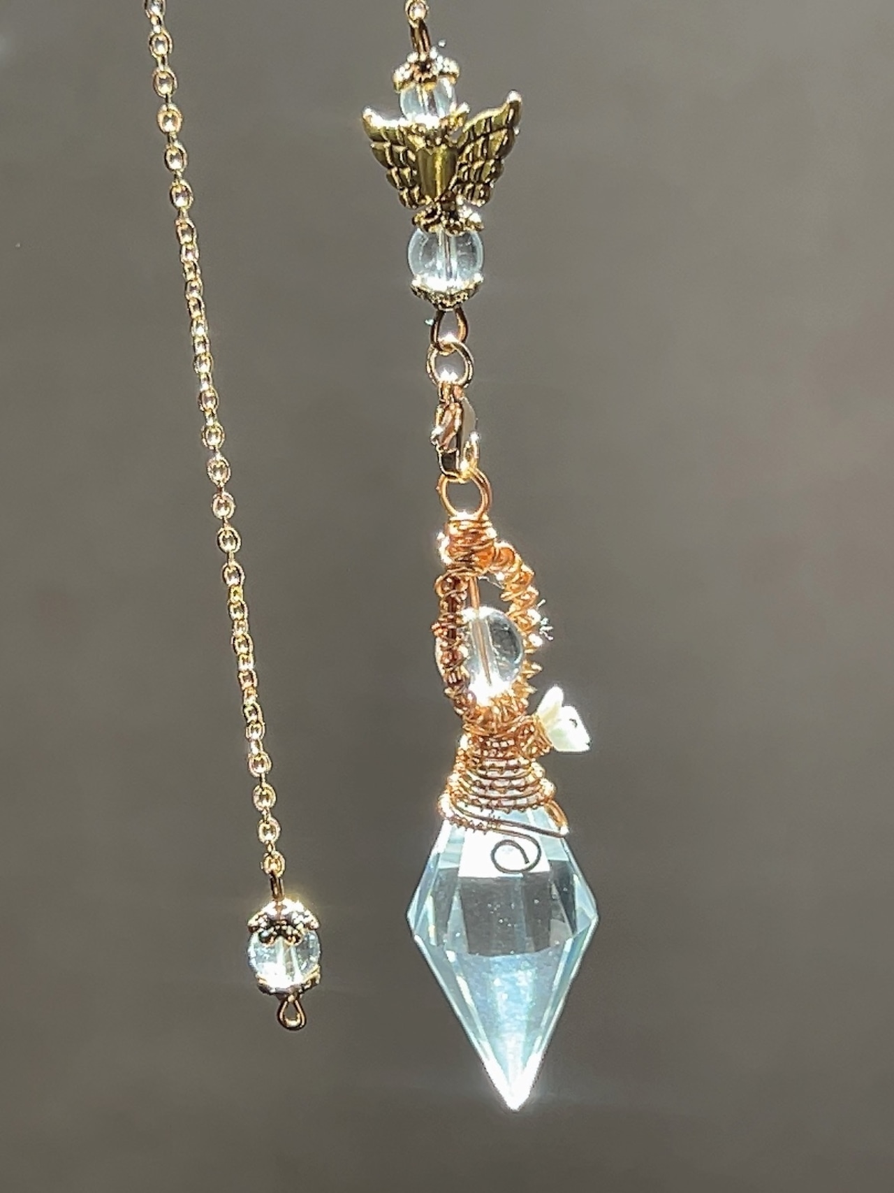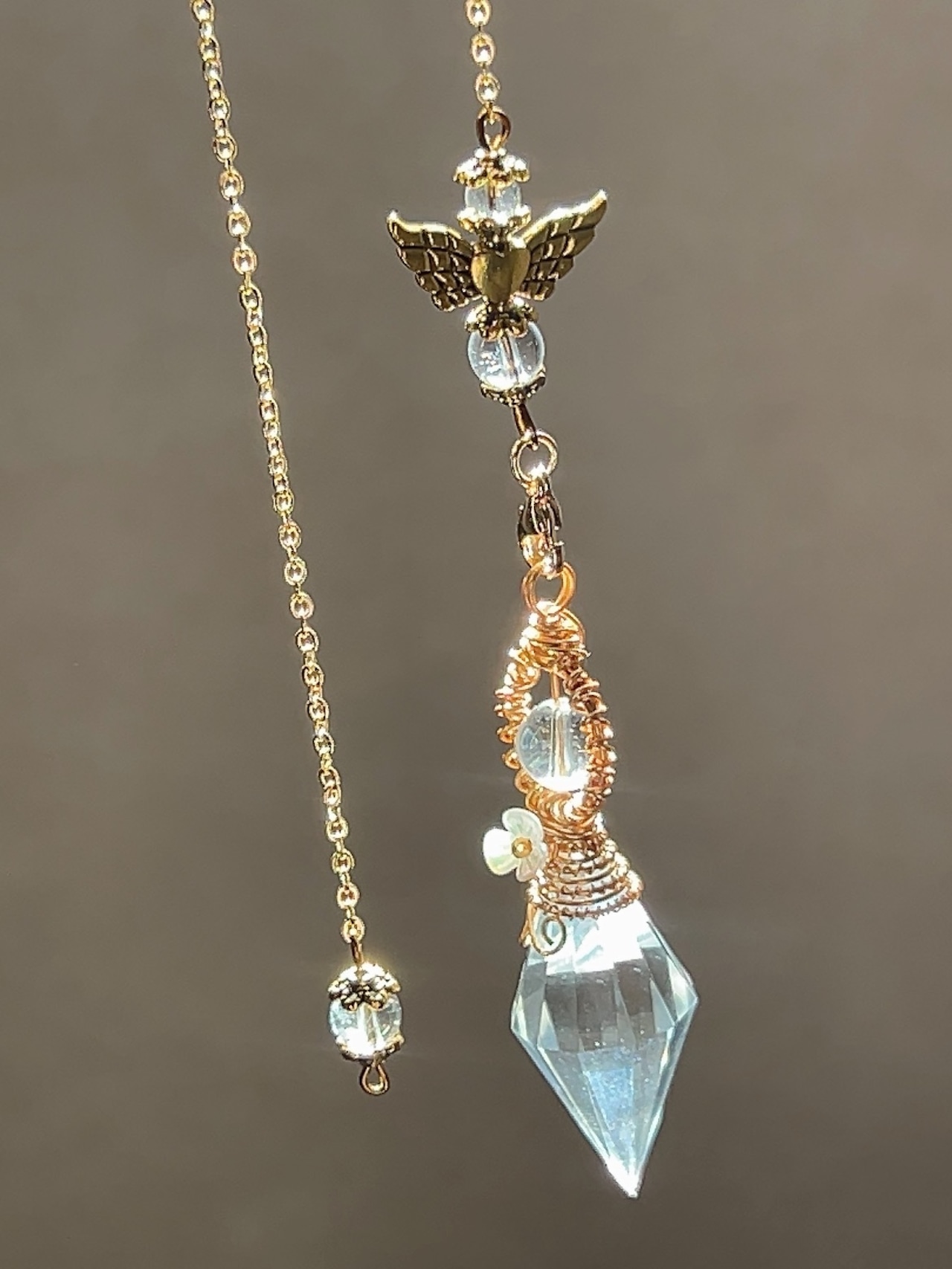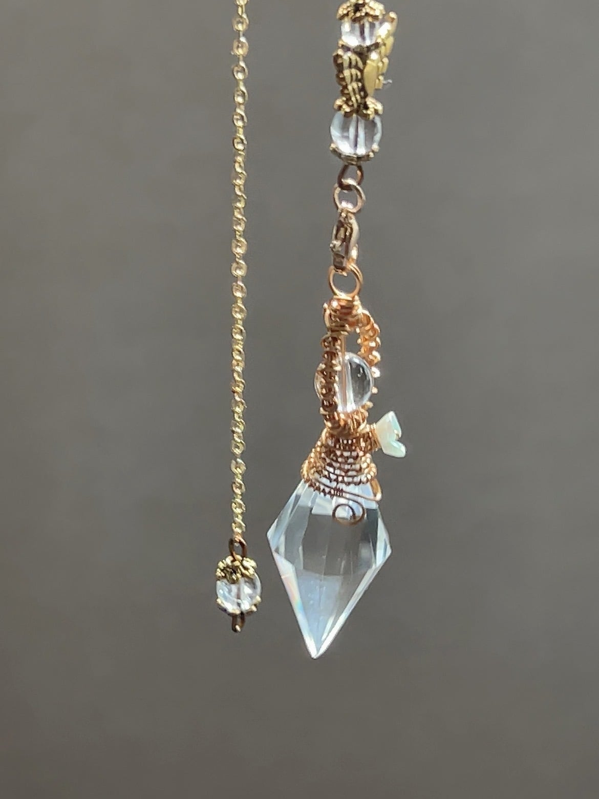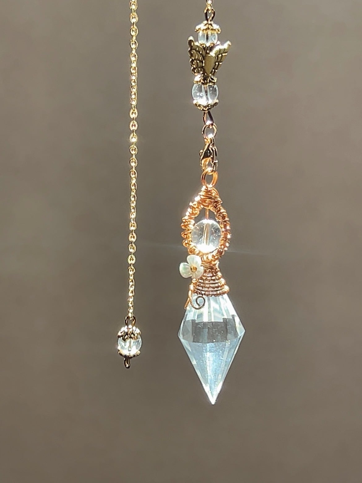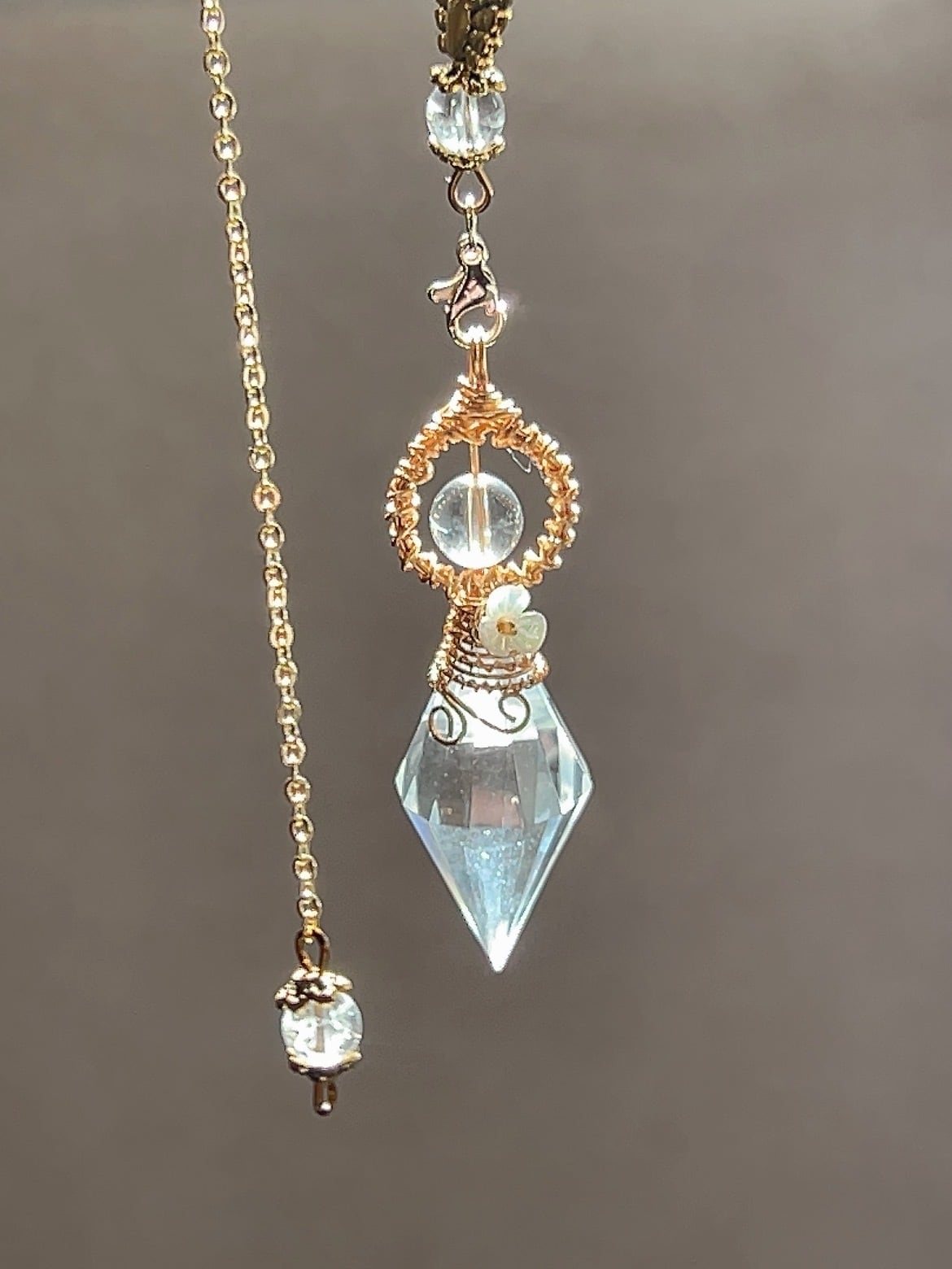 クリアクォーツ(水晶)のペンデュラムは、ダウジング(振り子)に用いて潜在意識の声や高次元の答えを導き出す、浄化・開運力の高いパワーストーンアイテムです。