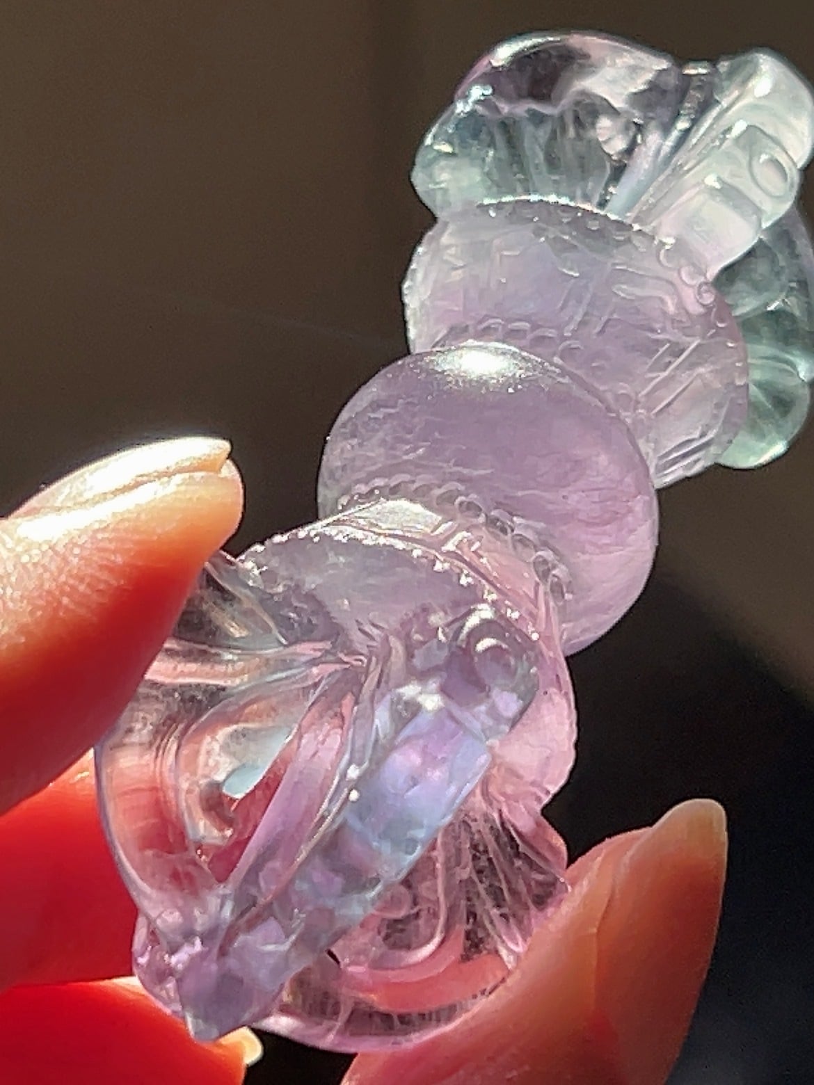 優しくふんわりカラーのフローライトの素敵なお色味とヴァジュラのオシャレ素敵なフォルムにうっとりしです♡