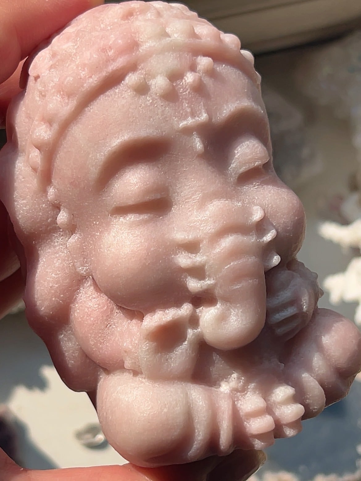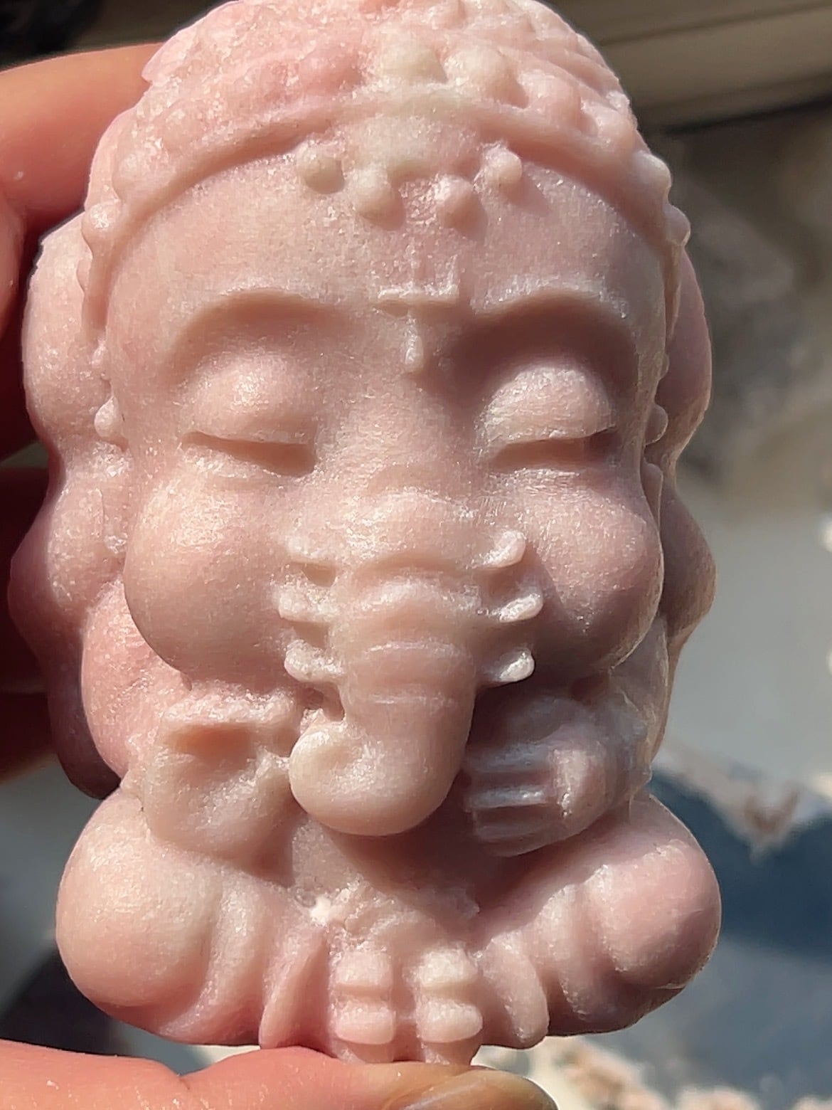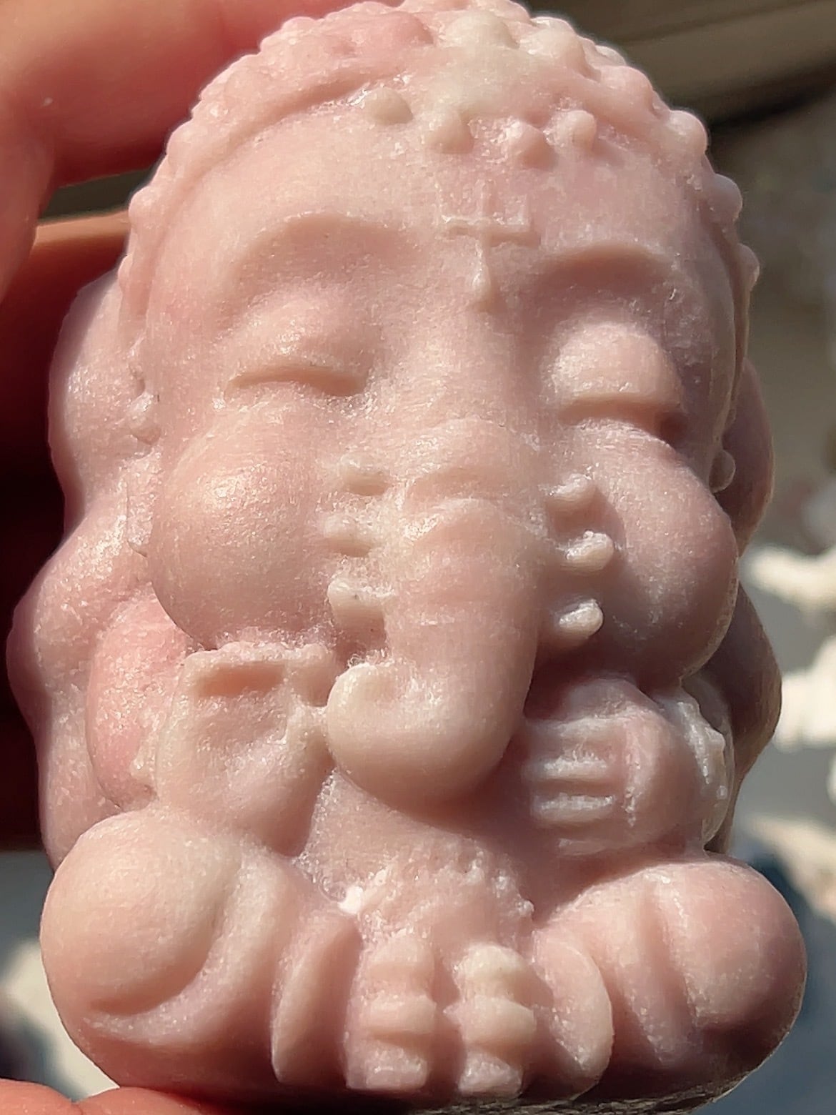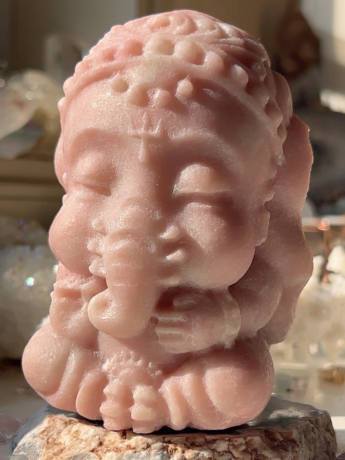 ほっぺがぷっくりしてて後ろの翼がとっても可愛いベビーちゃんみたいなお顔のピンクオパールガネーシャです♡