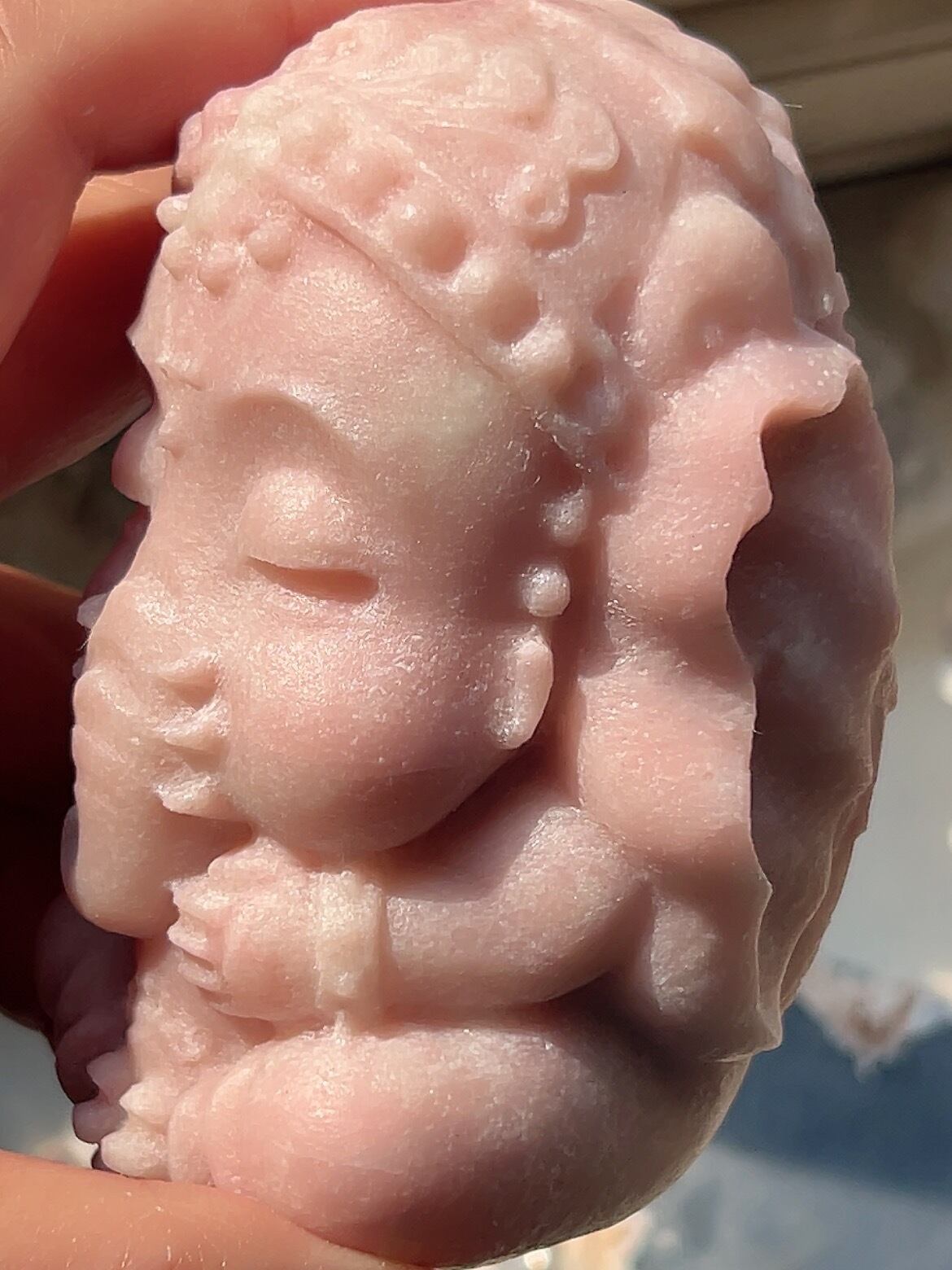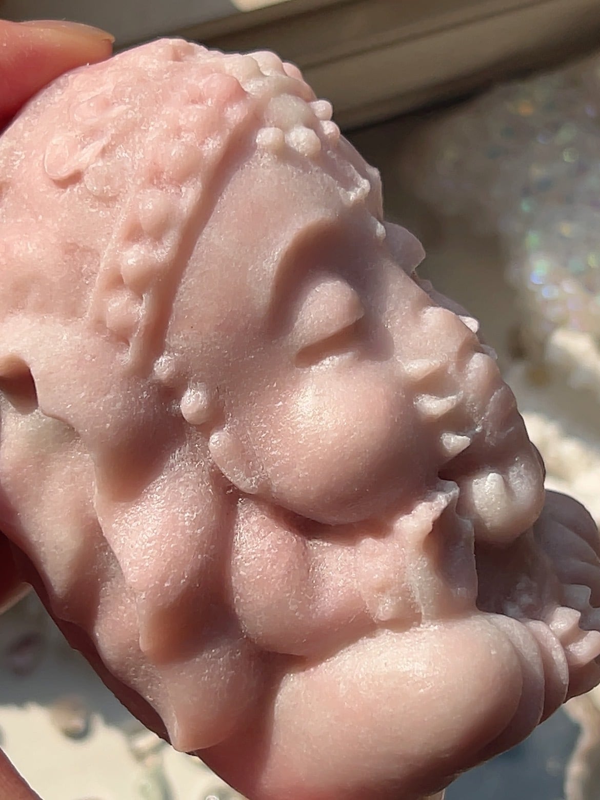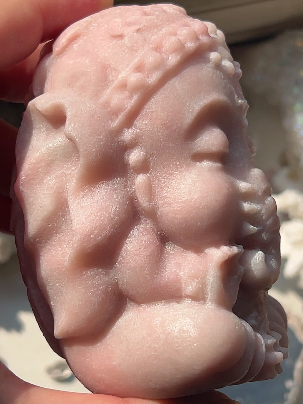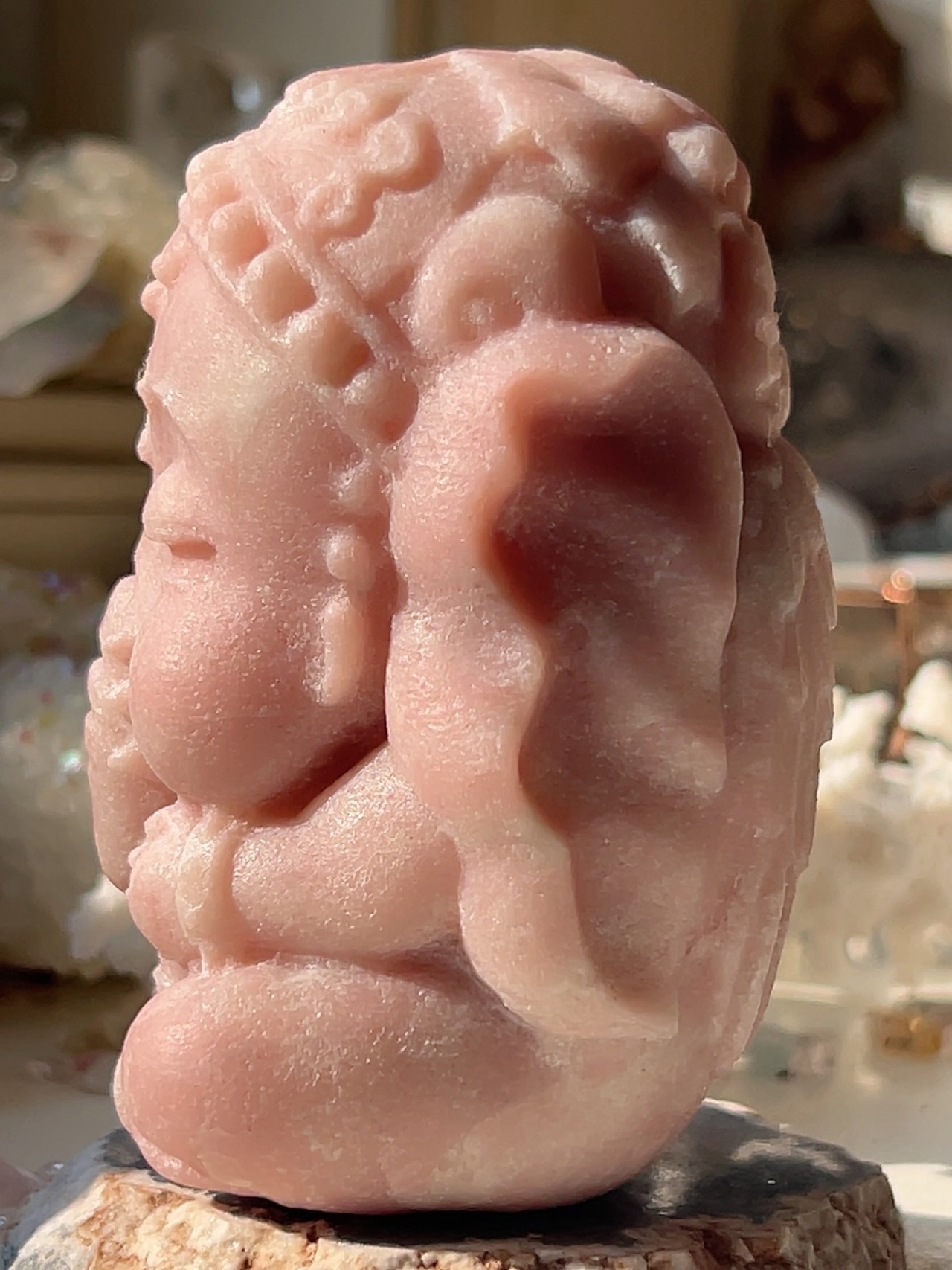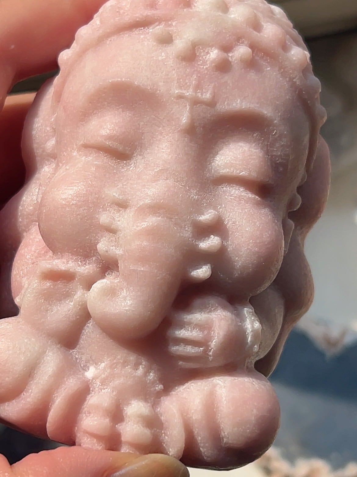 ほっぺがぷっくりしてて後ろの翼がとっても可愛いベビーちゃんみたいなお顔のピンクオパールガネーシャです♡