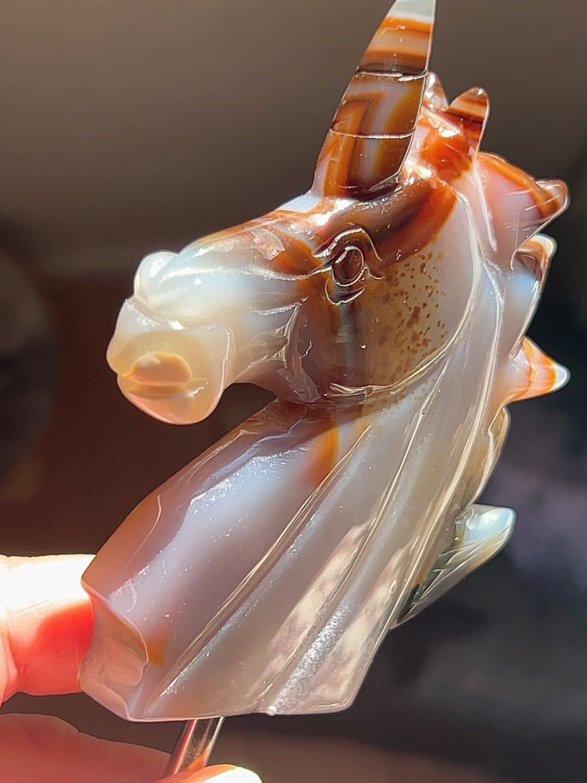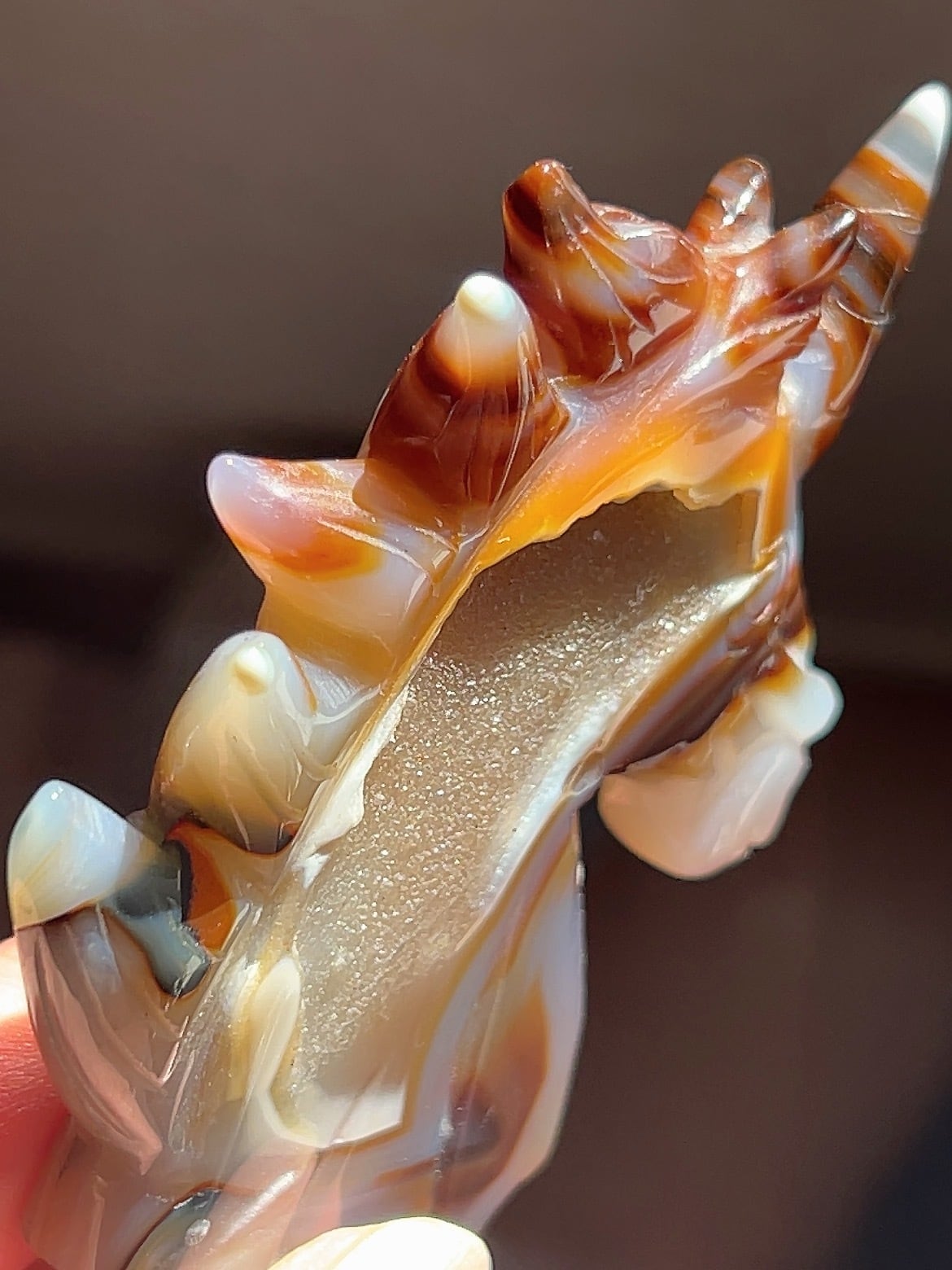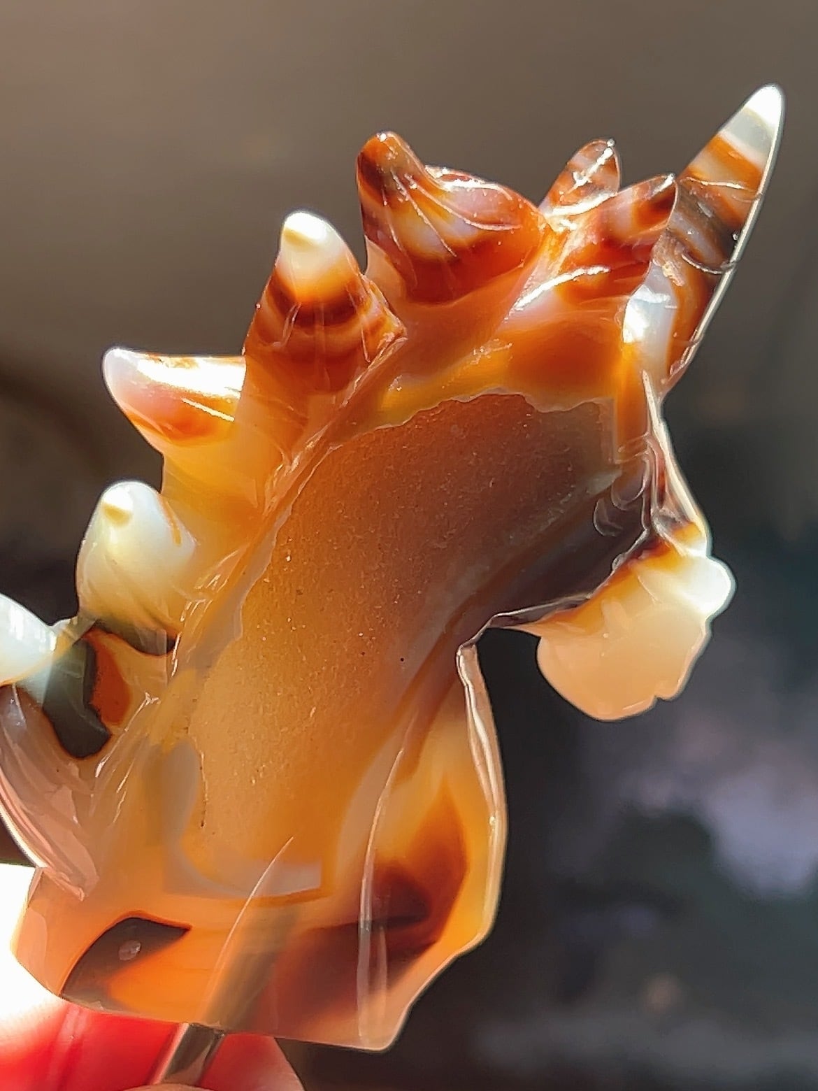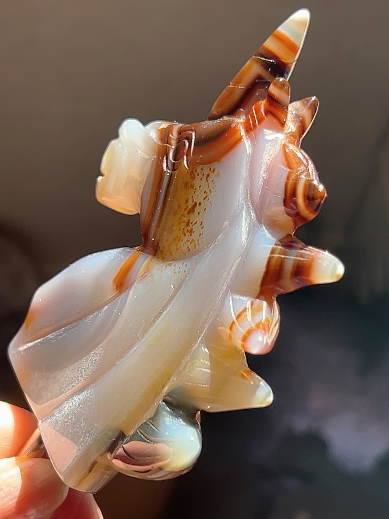 アゲートなので光を背にするとオレンジ色に染まります♪
