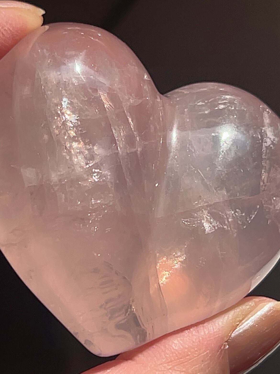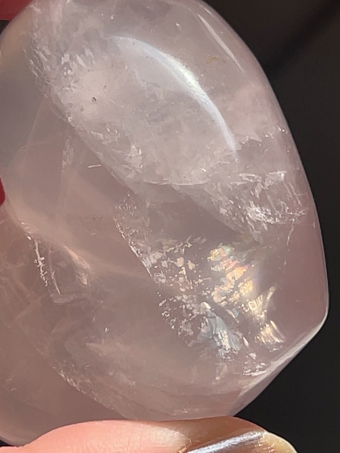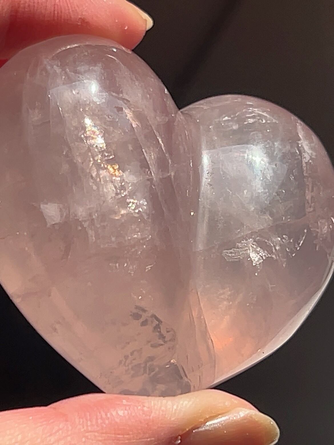 レインボーの煌めきやシラーが美しくとても豊かな気持ちになれる素敵なpeachローズクォーツHEARTちゃん☺︎♡