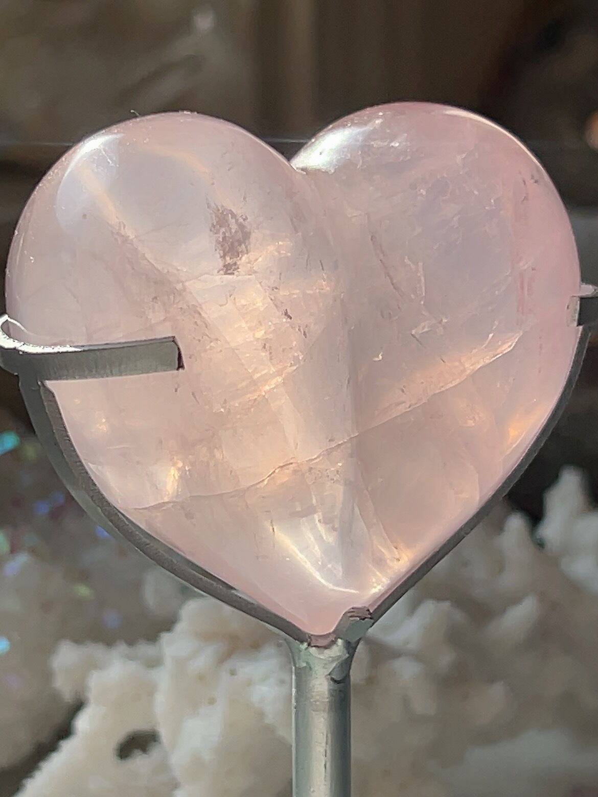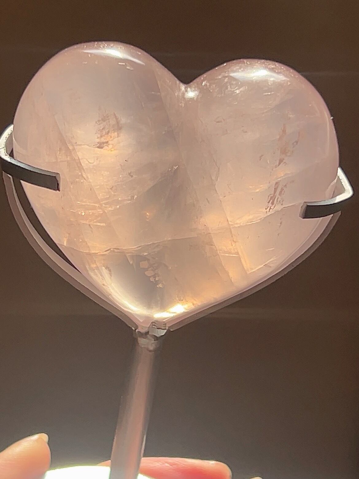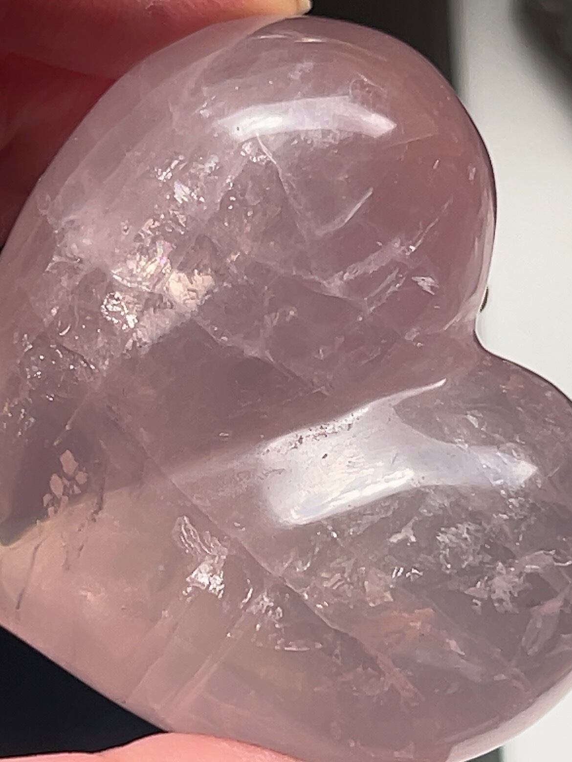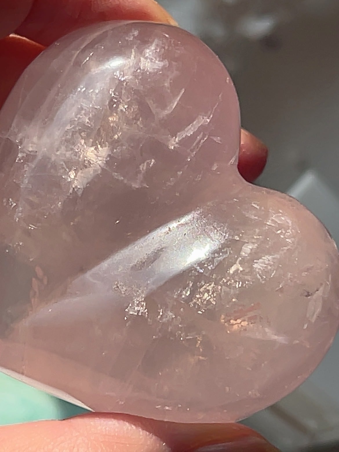 レインボーの煌めきやシラーが美しくとても豊かな気持ちになれる素敵なpeachローズクォーツHEARTちゃん☺︎♡