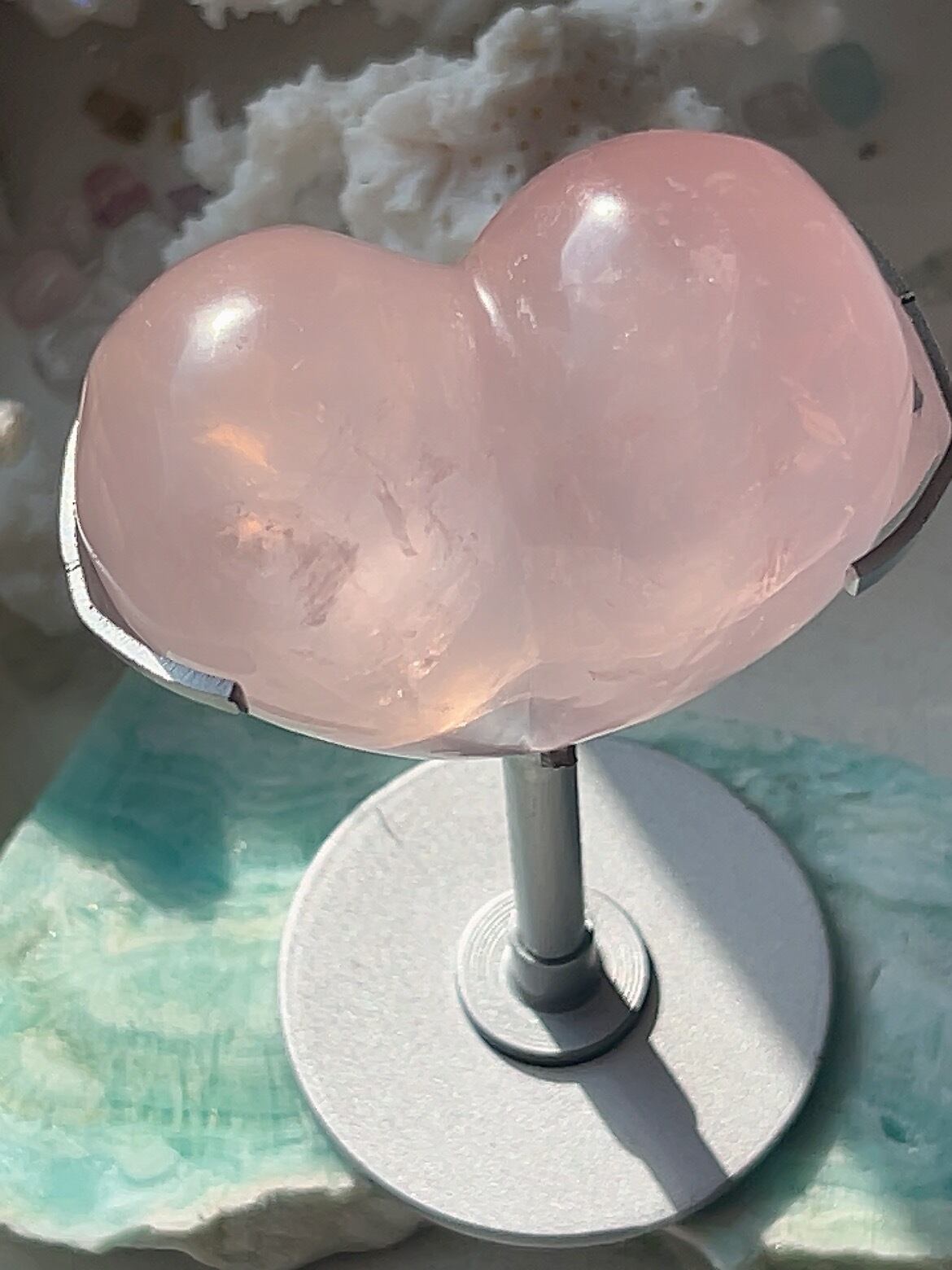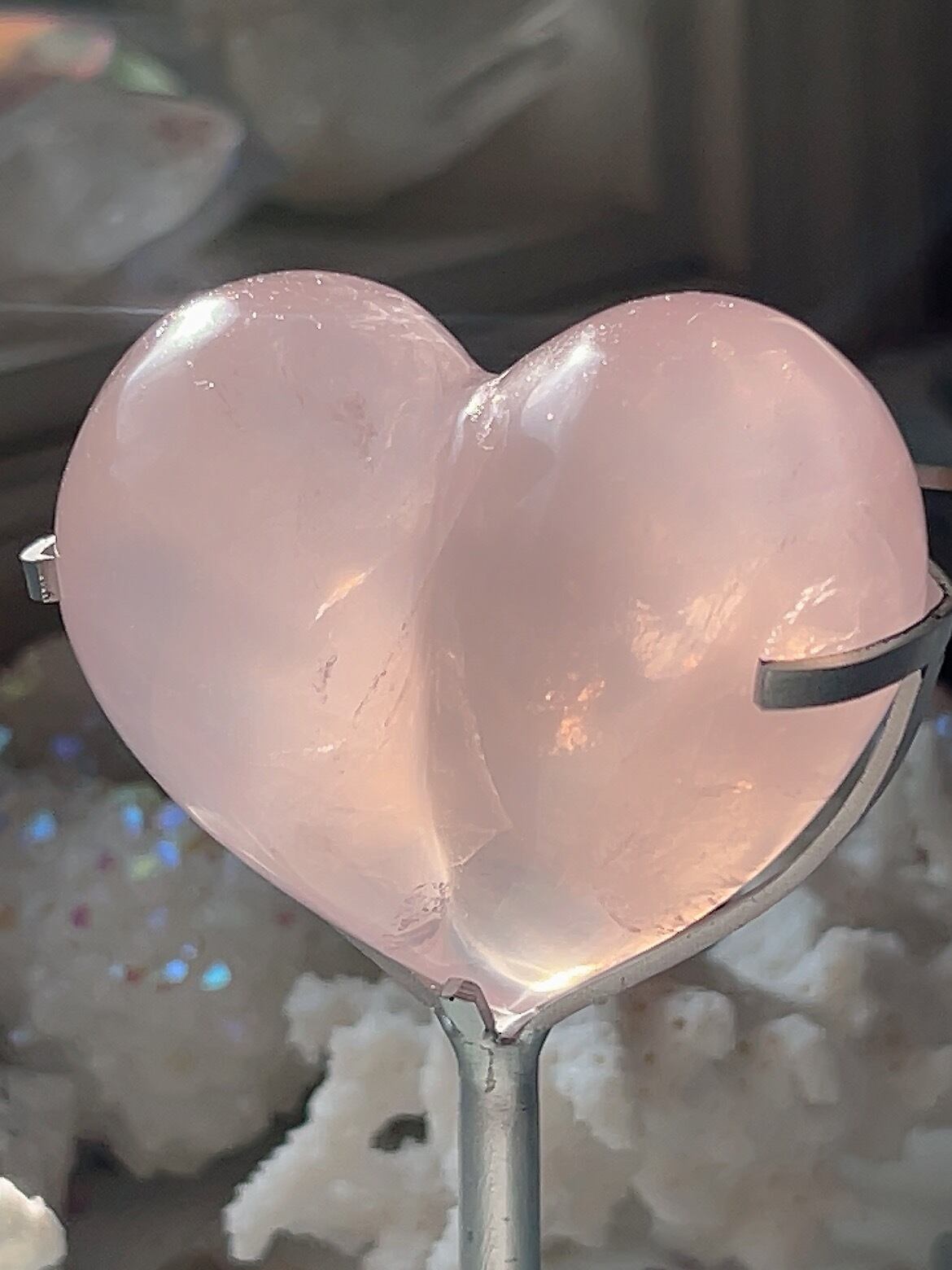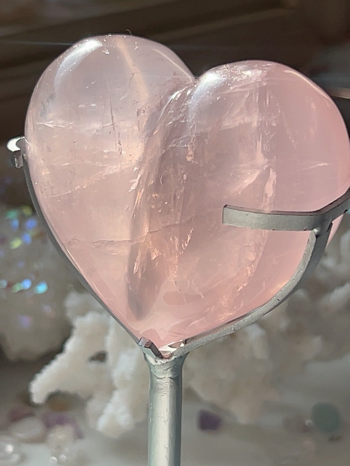 ローズクォーツハートは、愛と美、癒しを象徴し、自己愛を高めて心の傷を癒し、恋愛運や人間関係を円滑にする効果が期待できます。