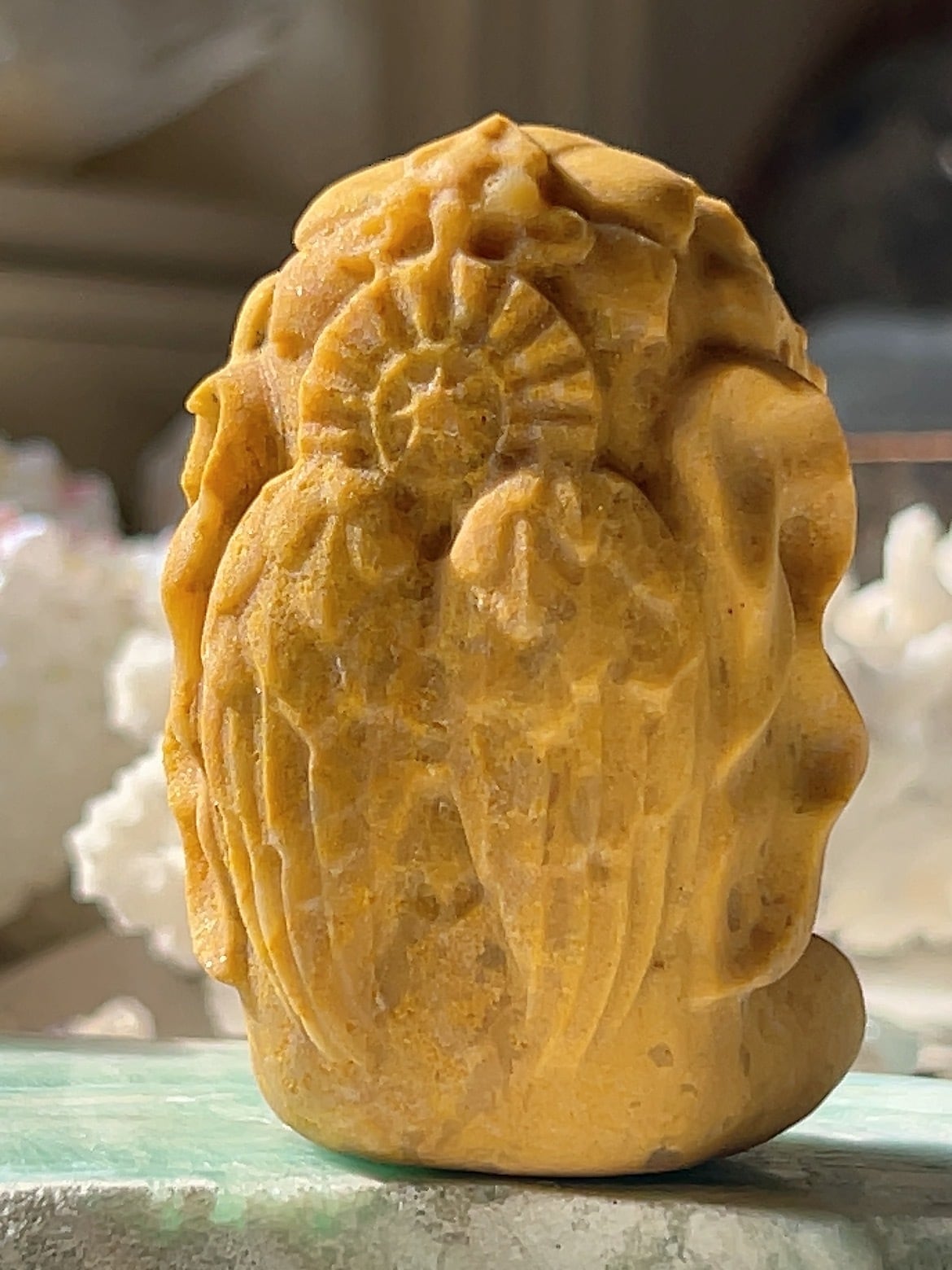 ガネーシャ神は「障害を取り除く神」「夢を叶える神」として知られ、イエロージェイドが持つ「幸運」「富」「知恵」のエネルギーと合わさることで、より強力な開運アイテムとなります。