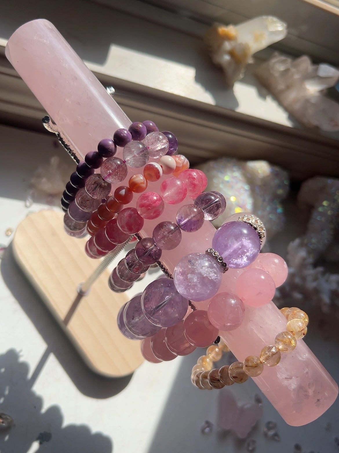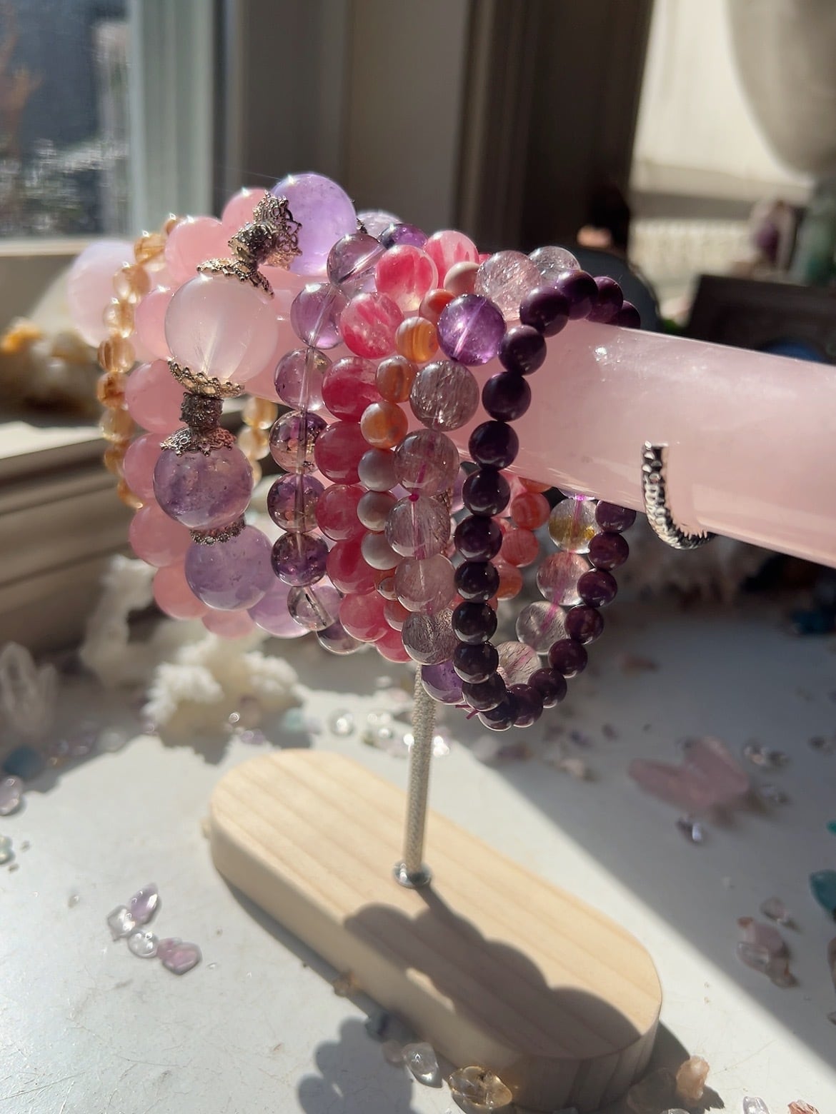遠目から見ても素敵でワクワクするローズクォーツのブレスholderです♡