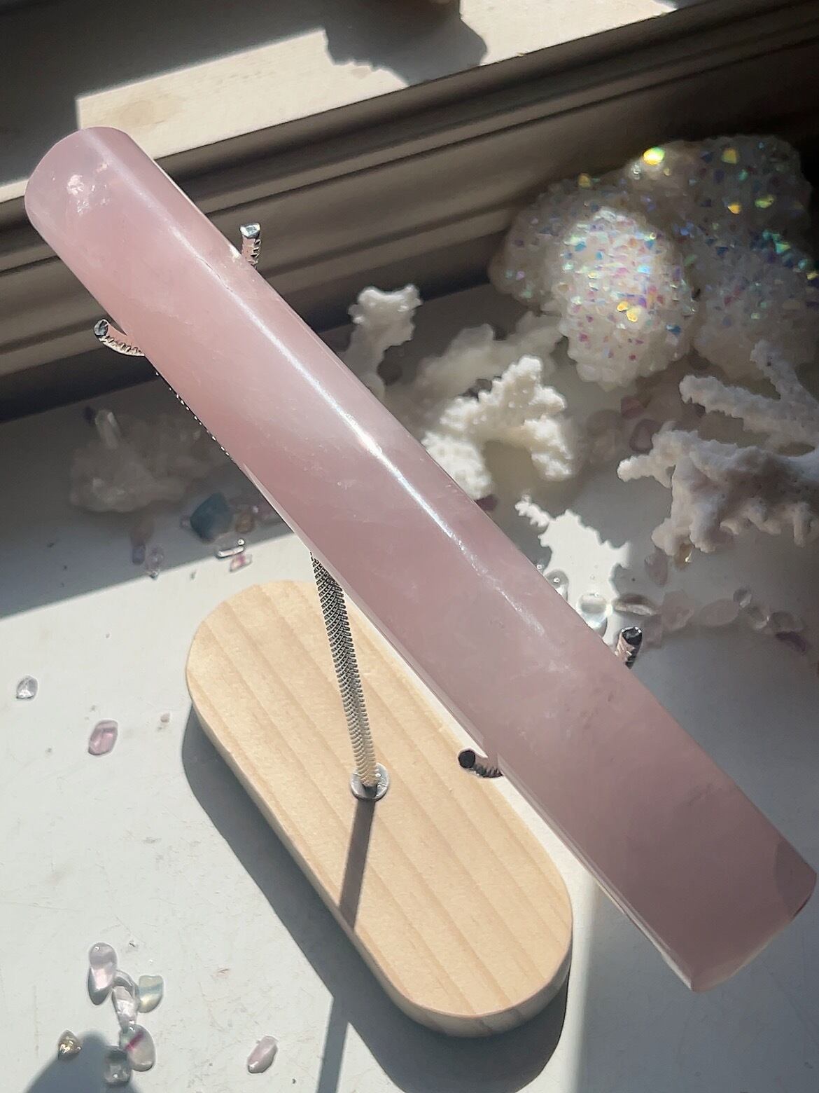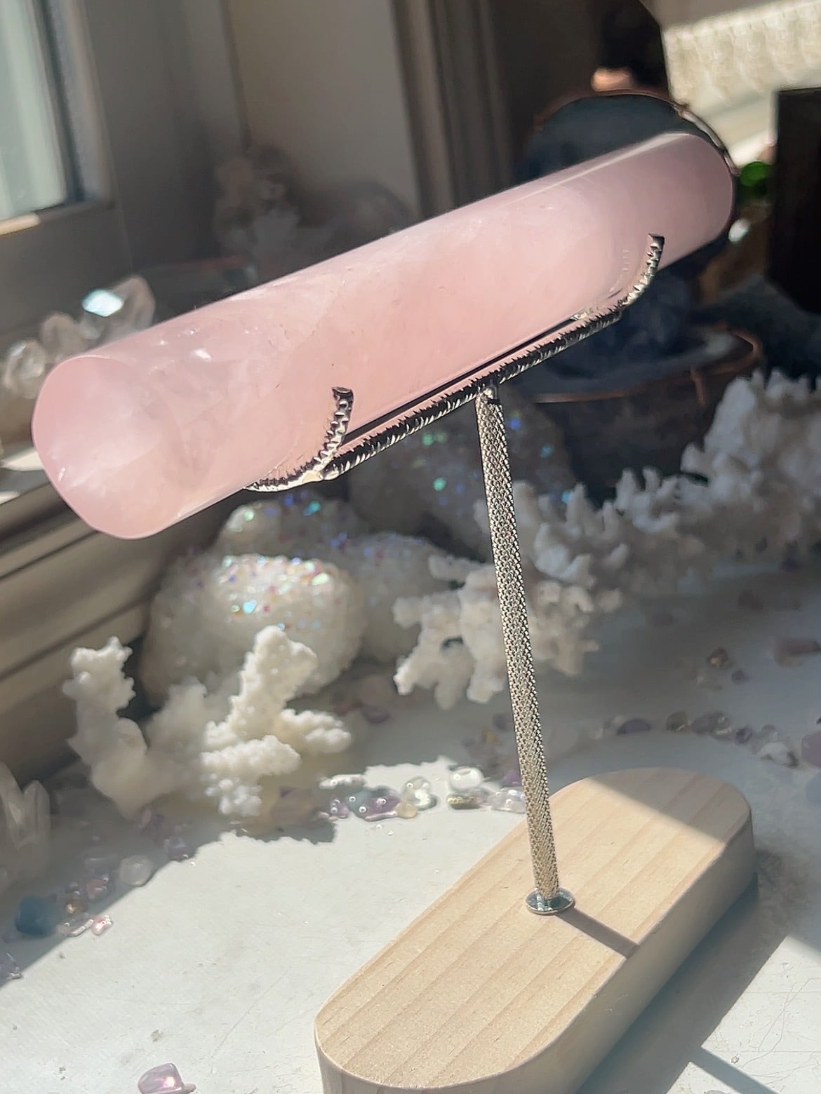 このholderはとても長くスタンドも下で固定してるのでそのままローズクォーツをホルダーから外さなくても飾れます❣️