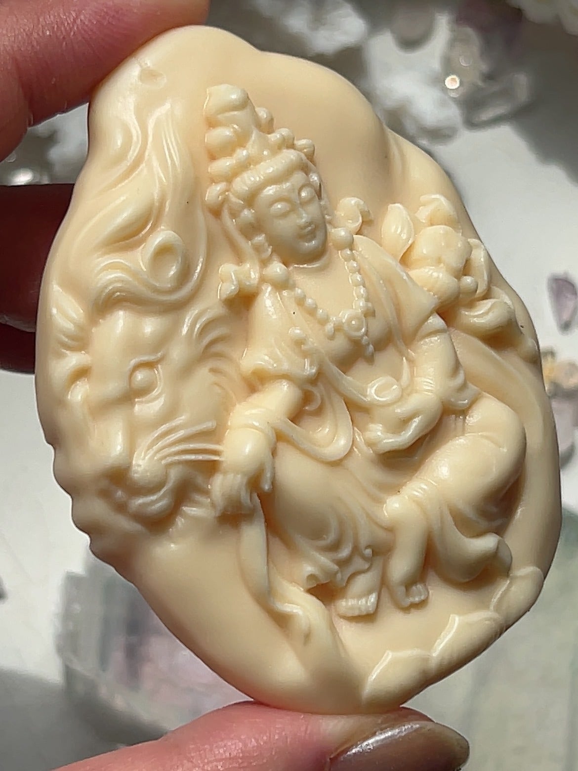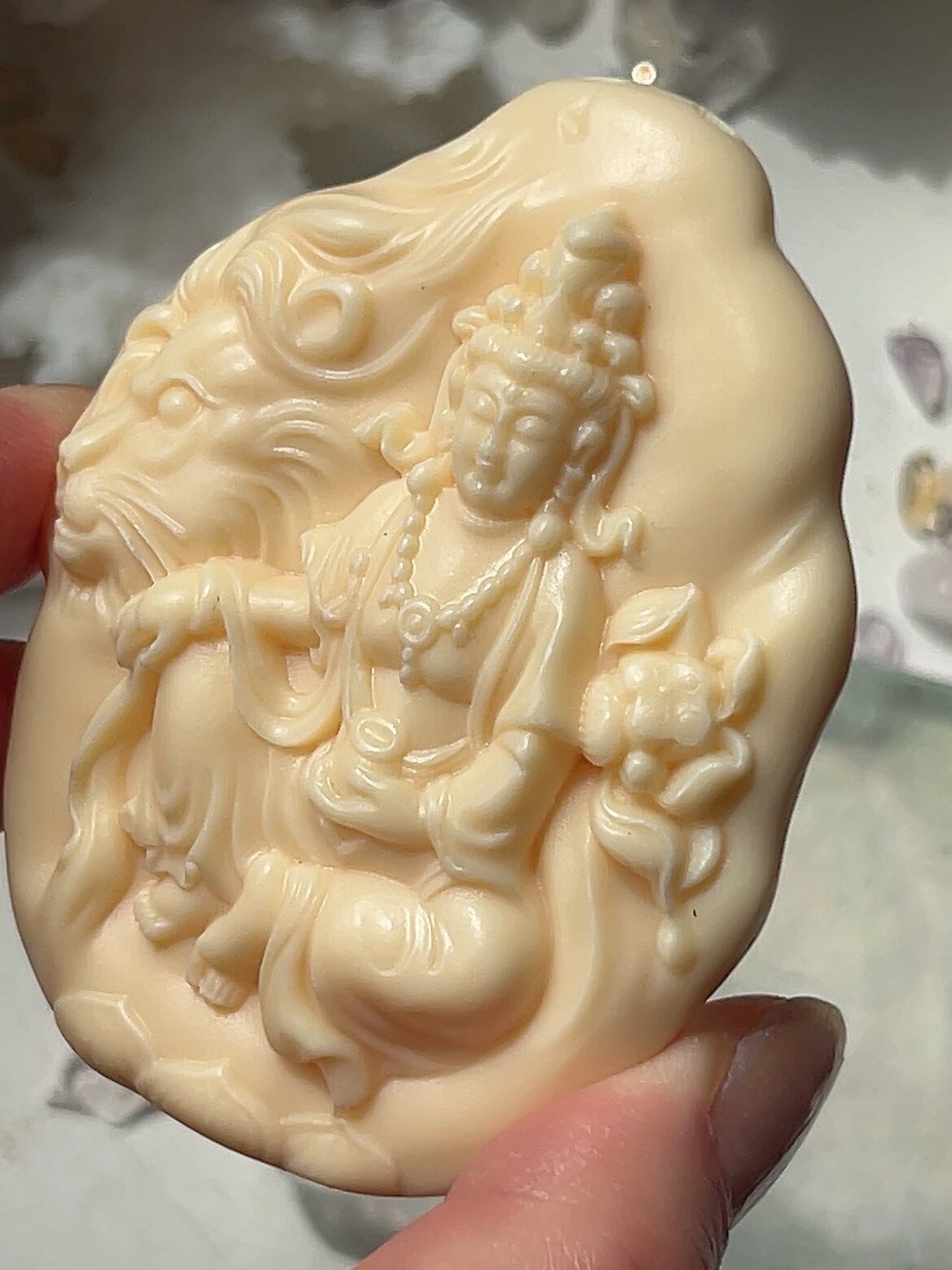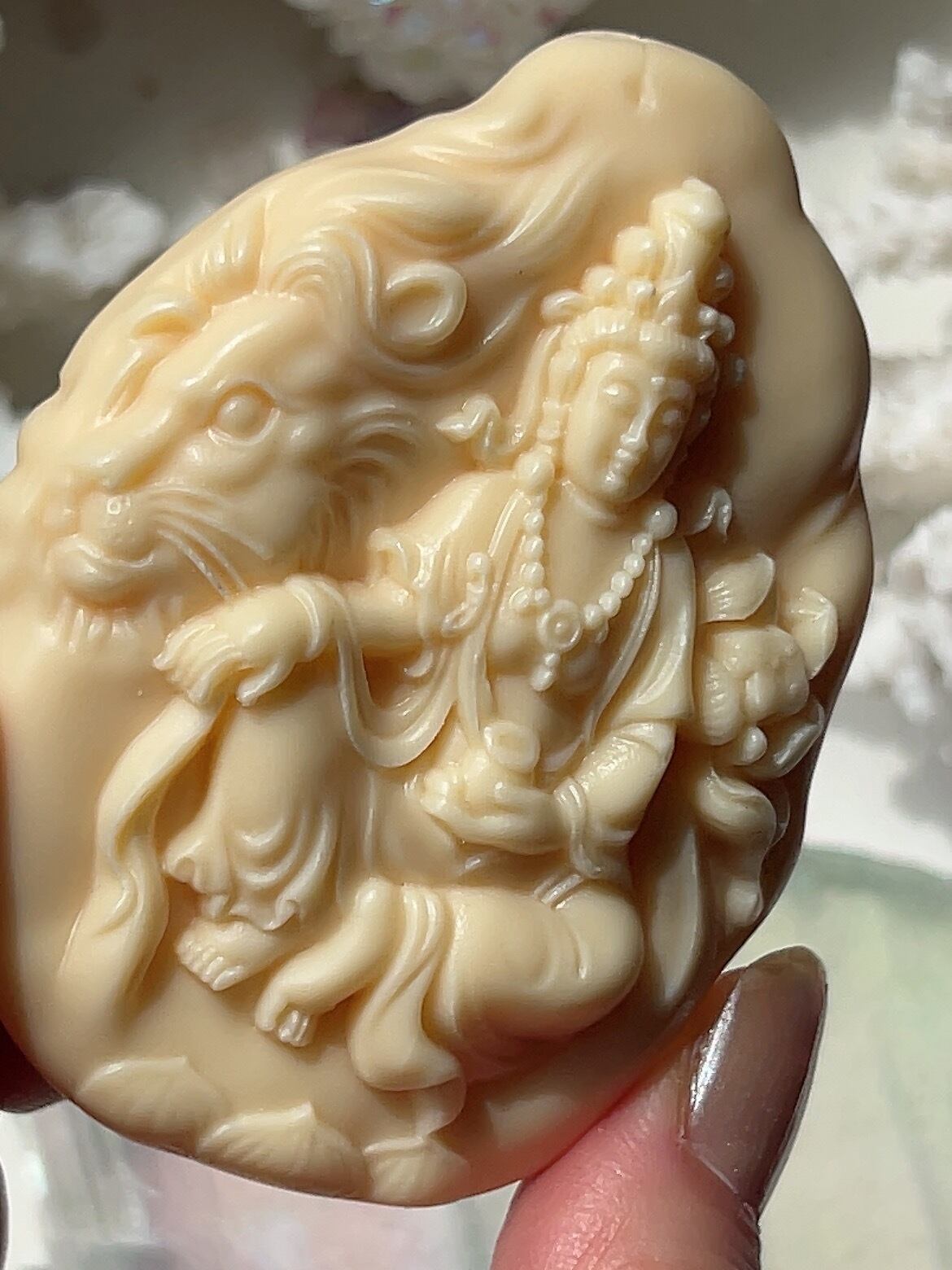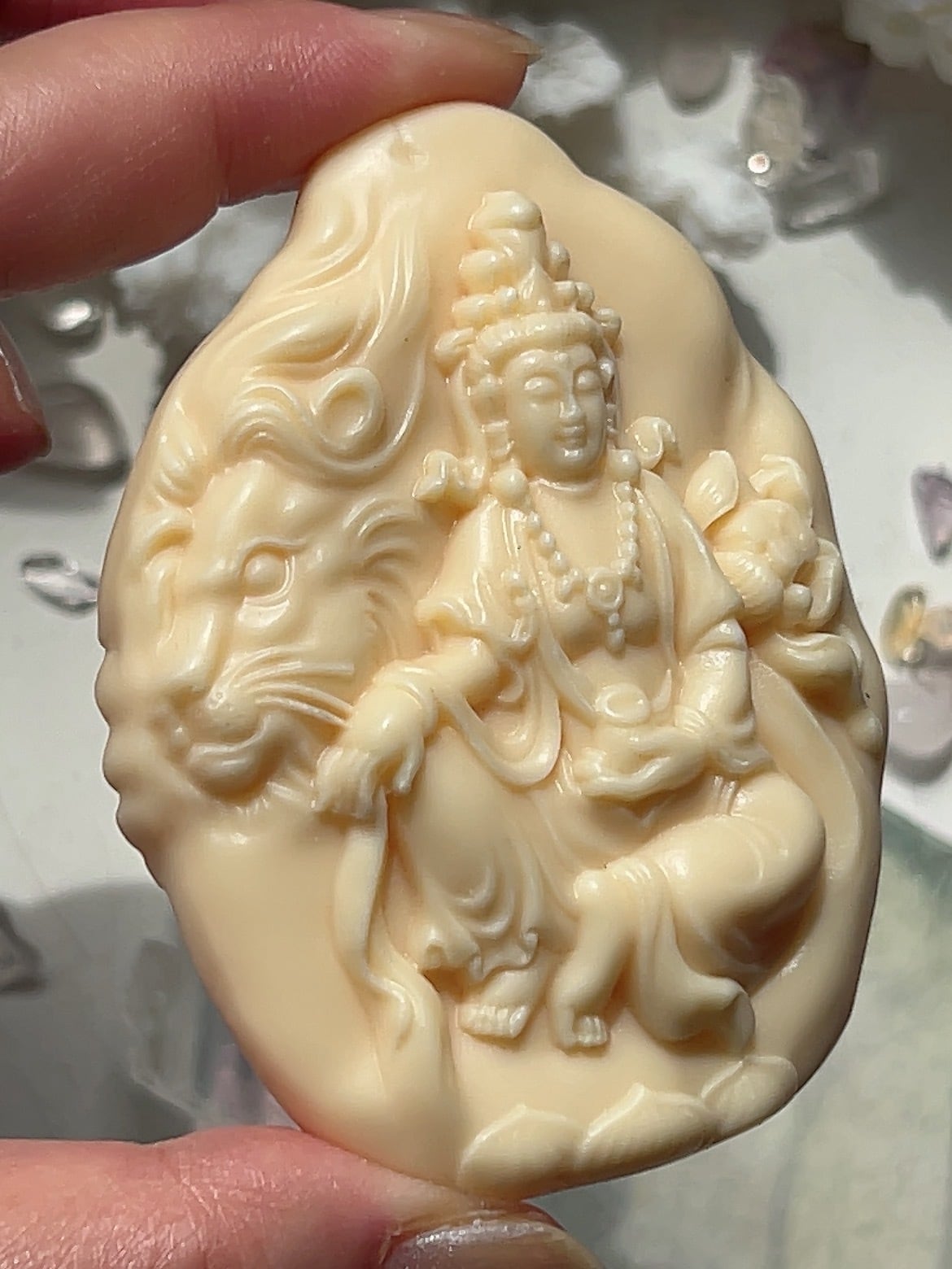 美しい仏陀様とライオン☆ 違う面は仏陀様とゾウさん♡