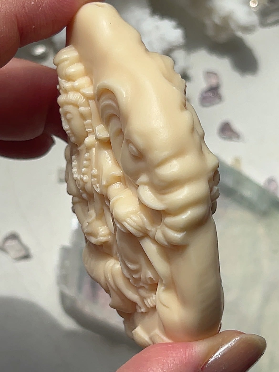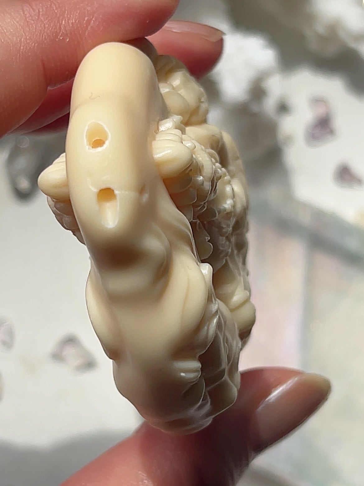 タグアナッツを彫った「呑金獣(金をお腹に貯める神獣)」などは、金運アップや福を招くお守りとしての効果があると言われています。