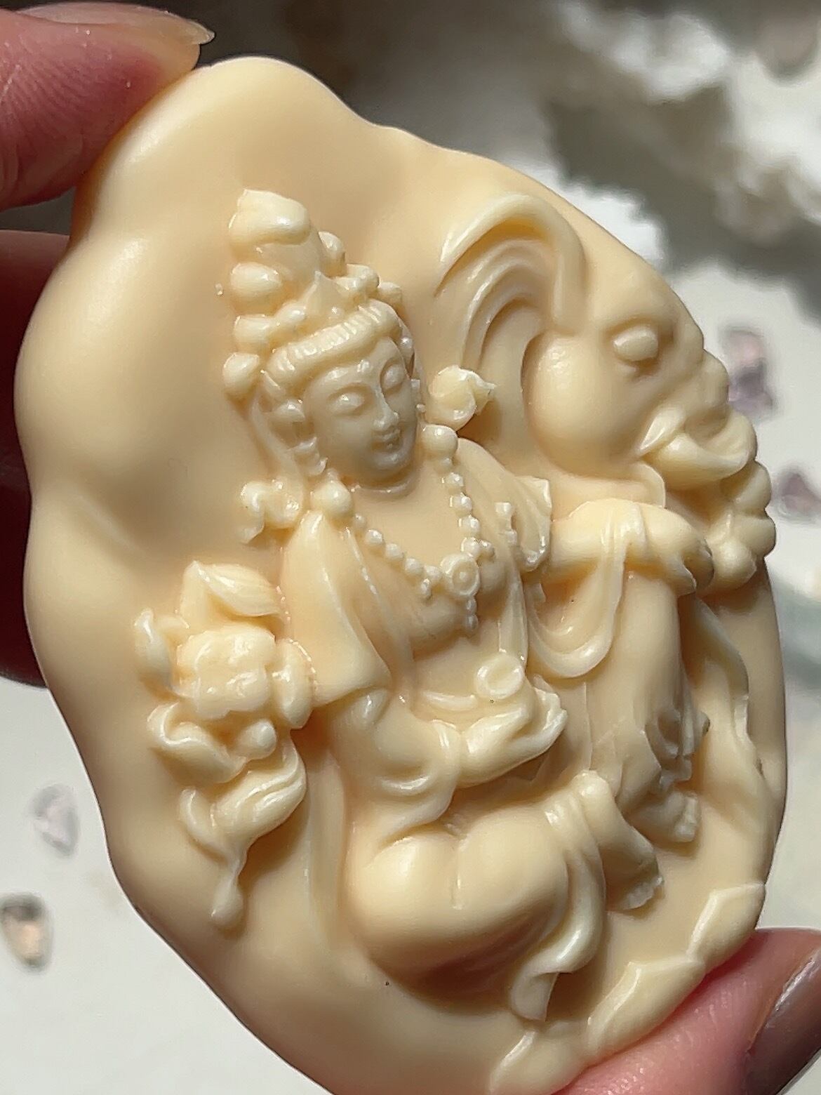 天然の菩提樹の実(タグアナッツ)を使用しているため、仏教における慈悲の心や悟りの恵みを得られると信じられています。